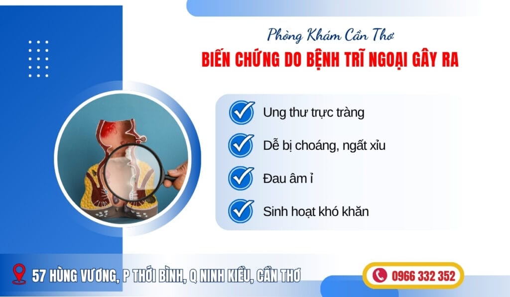 • Ung thư trực tràng: đây là biến chứng nguy hiểm của bệnh trĩ ngoại. Khi bệnh chuyển sang giai đoạn nặng, tái phát nhiều lần sẽ gây ung thư trực tràng, thậm chí người bệnh tử vong.